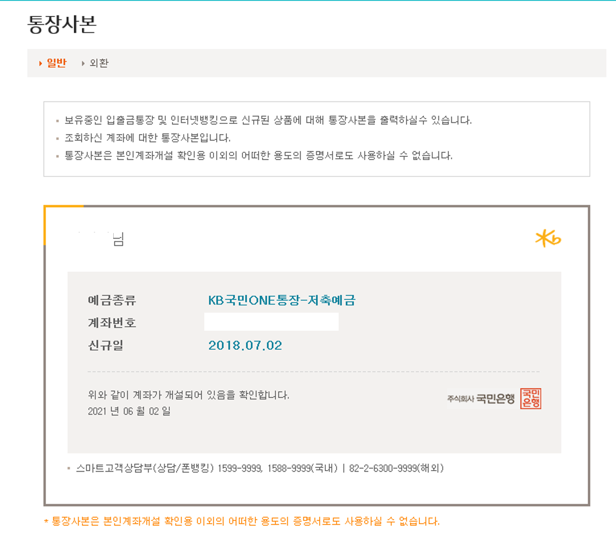 ▷ 온 라 인 : 각 은행 홈페이지를 통한 통장사본 출력