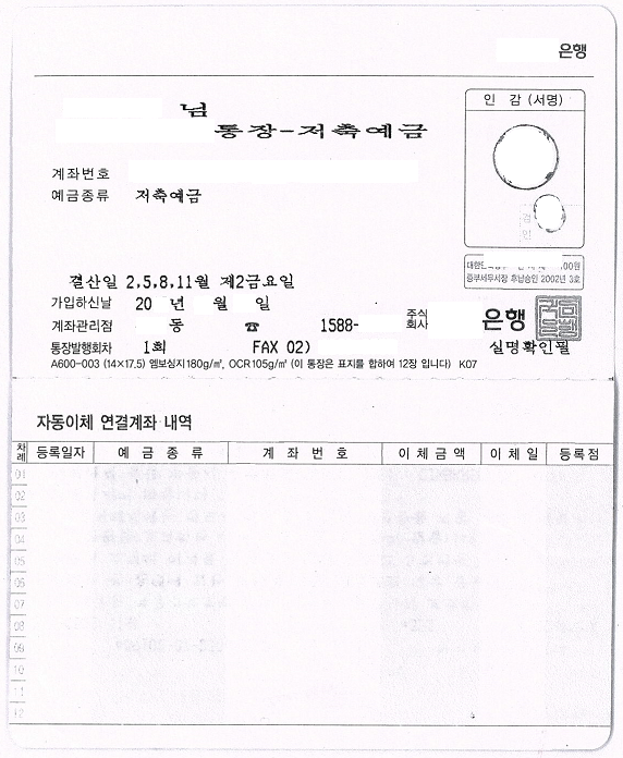 ▷ 오프라인 : 예금주와 계좌번호가 나온 실물 통장 첫 페이지를 스캔 및 촬영